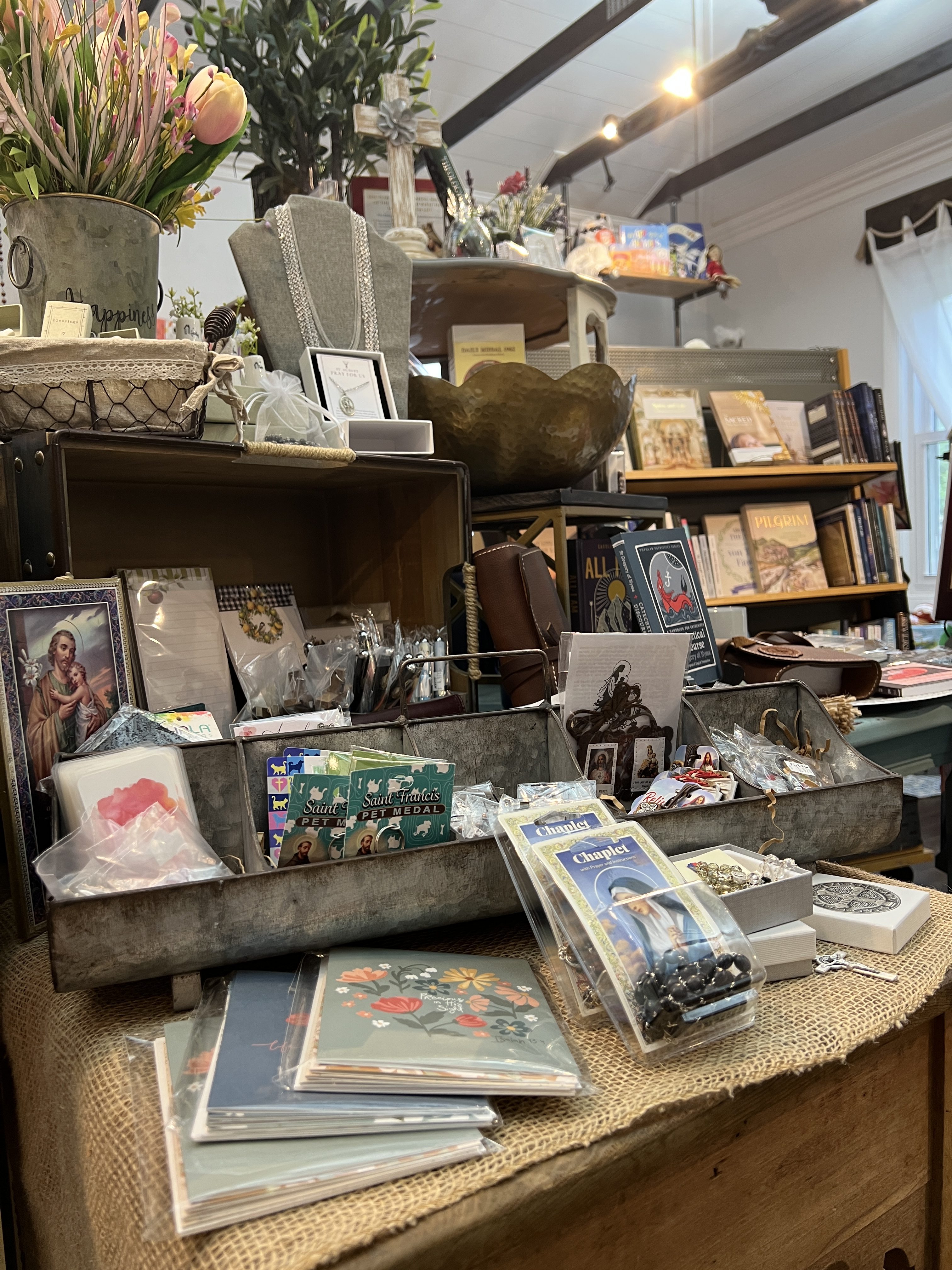 About six months after the first nudge Sarah started chatting with me about her desire to open a faith-based Book & Gift shop. I encouraged her as she discerned that desire and soon she was asking me to start the venture together. I have never looked back and feel completely blessed to offer beautiful faith filled items to our customers.