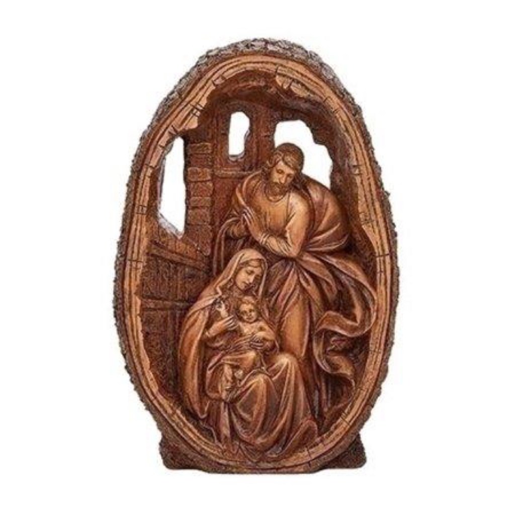 11" Hand-Carved Holy Family Tabletop Figurine, Perfect for Christmas Decor with Durable Craftsmanship.