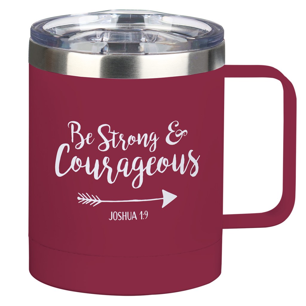 Give an encouraging gift to a friend, mother, or sister who needs to be brave and needs the Lord's strength to uphold her whether she is camping in the outdoor wilderness or living in a modern jungle when you present her with the Be Strong & Courageous Very Berry Camp Style Stainless Steel Mug.