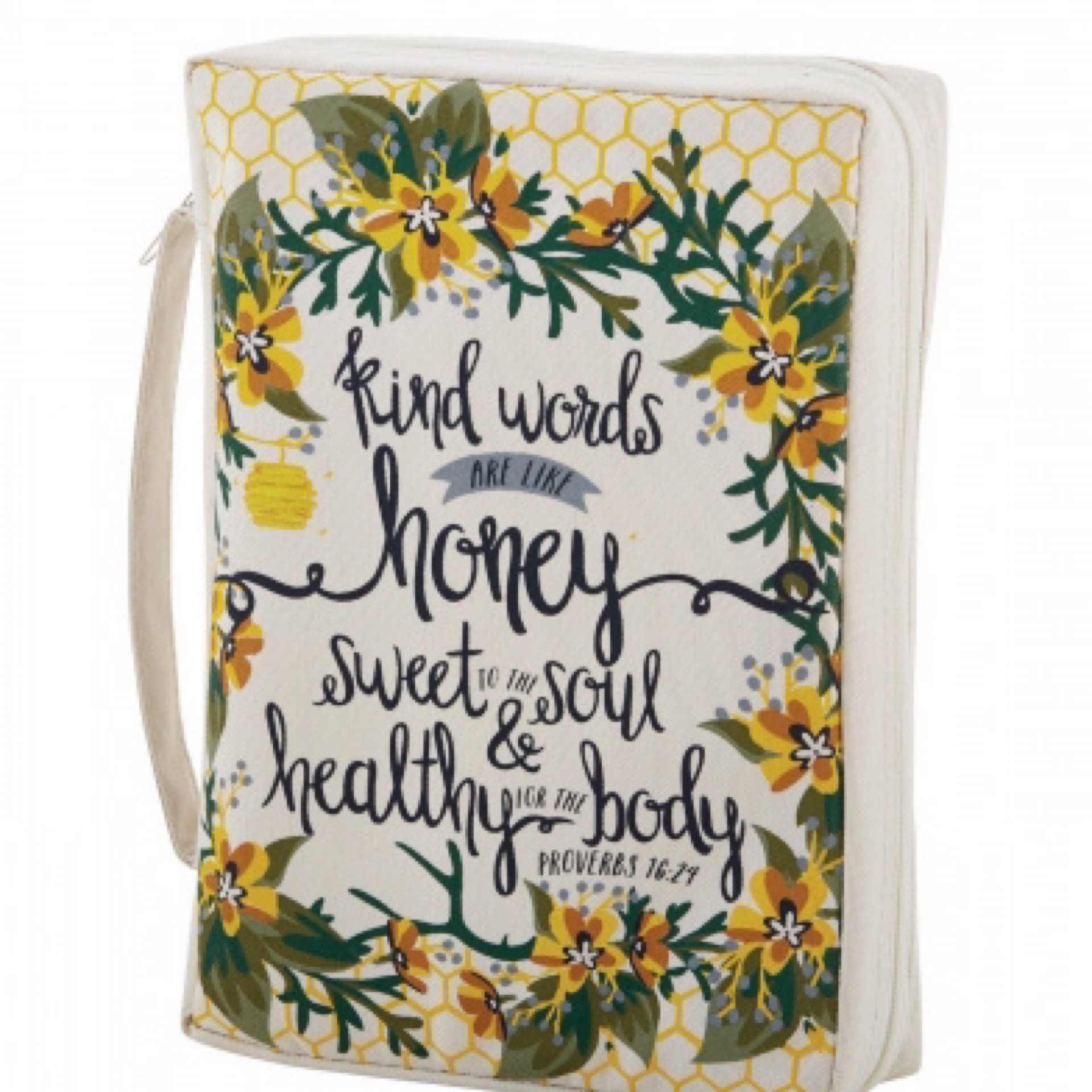 Sturdy canvas bible cover with wraparound zipper and verse on front