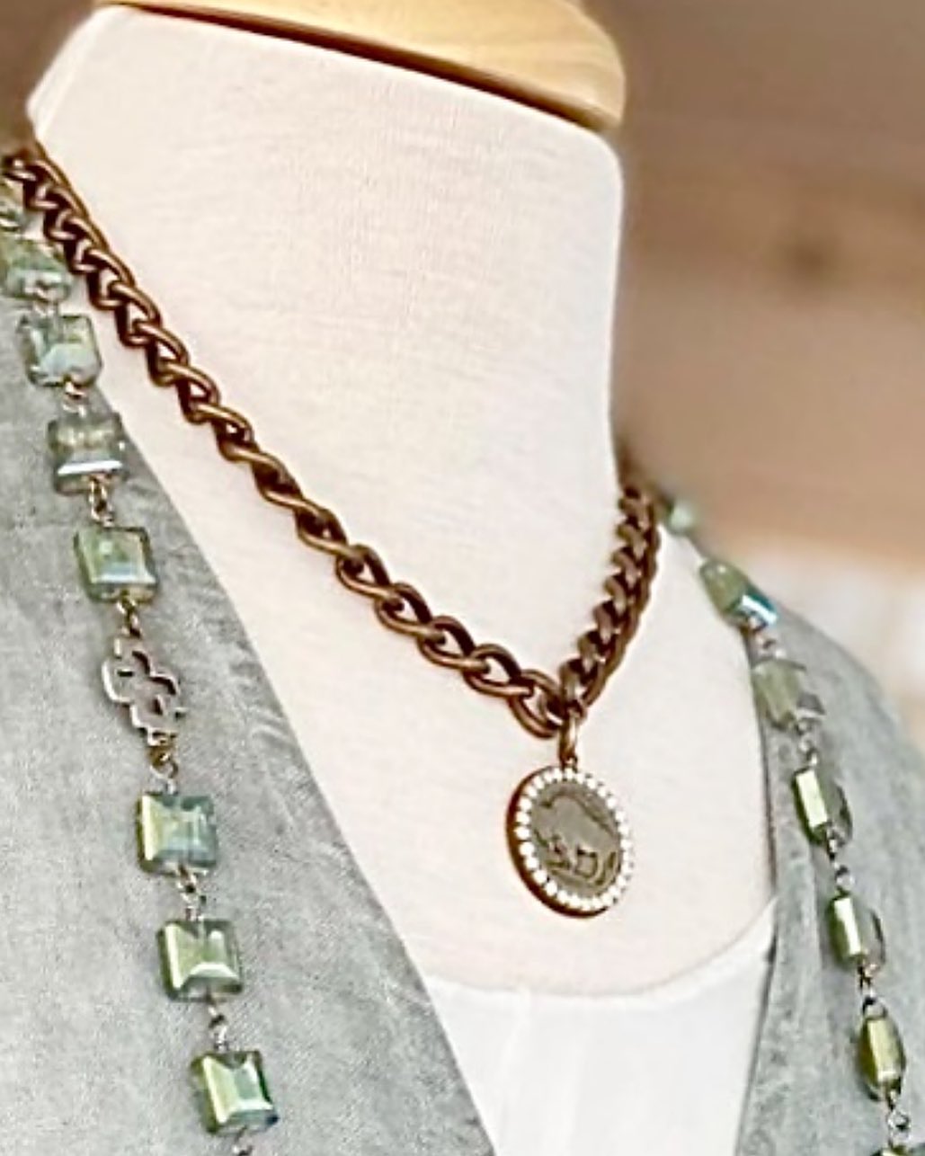 Buffalo coin with rhinestones chunky chain TWIGS-545