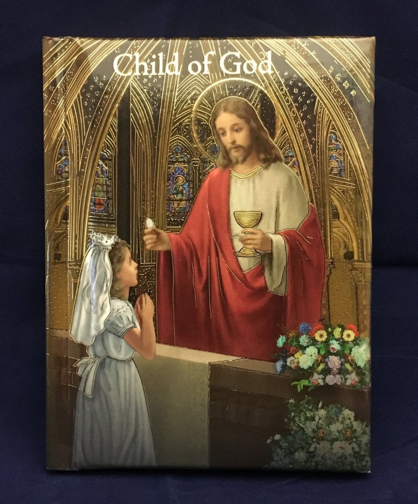 The Cathedral edition of the "Child of God" Missal and prayer book is filled with treasures. A handy page for recording information is followed by the Order of the Mass, common prayers, Stations Of the Cross and more. The language of this book is clear and concise, perfect for young readers. Written by Father Daniel A Lord, the book has an imprimatur and many beautiful illustrations from the Fratelli-Bonelli art collection interspersed throughout the 144 pages. The book measures 4 inches by 5-1/2 inches and has gold accents on its padded cover. This is a perfect gift for any little girl celebrating her First Communion.