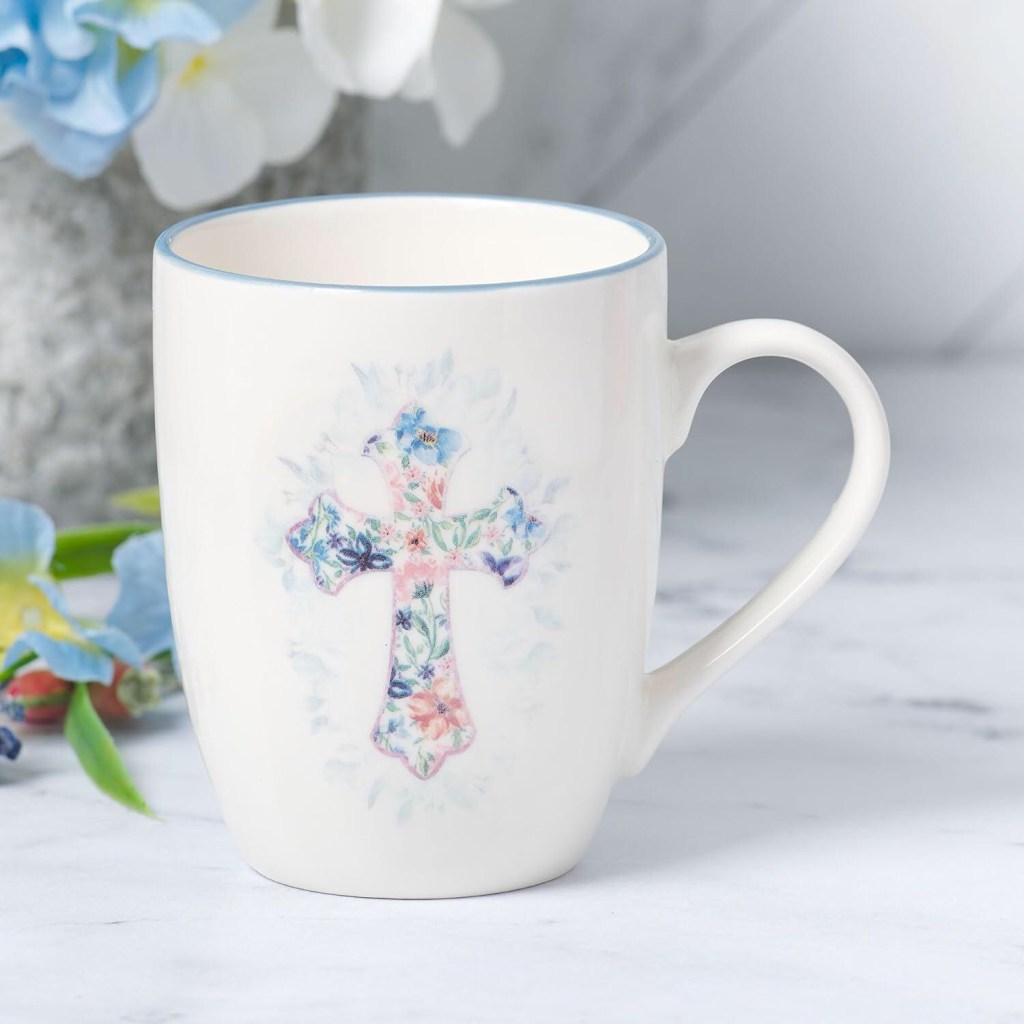 Christian Art Gifts Encouraging Ceramic Coffee & Tea Mug for Women: Pink & Light Blue Floral Cross, Cute Microwave & Dishwasher Safe Cup, Lead-Free Clean Inspirational Novelty Drinkware, White Olive and Myrrh 9 months ago