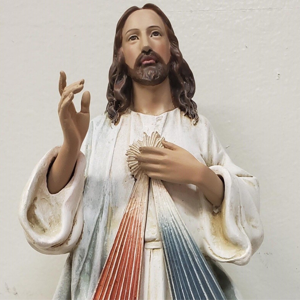 Divine Mercy Statue 9.5” 41255 Olive and Myrrh 4 years ago Brand: Joseph Studio Materials: Resin/Stone Mix Dimensions: 9.5"H 4"W 3.125"D