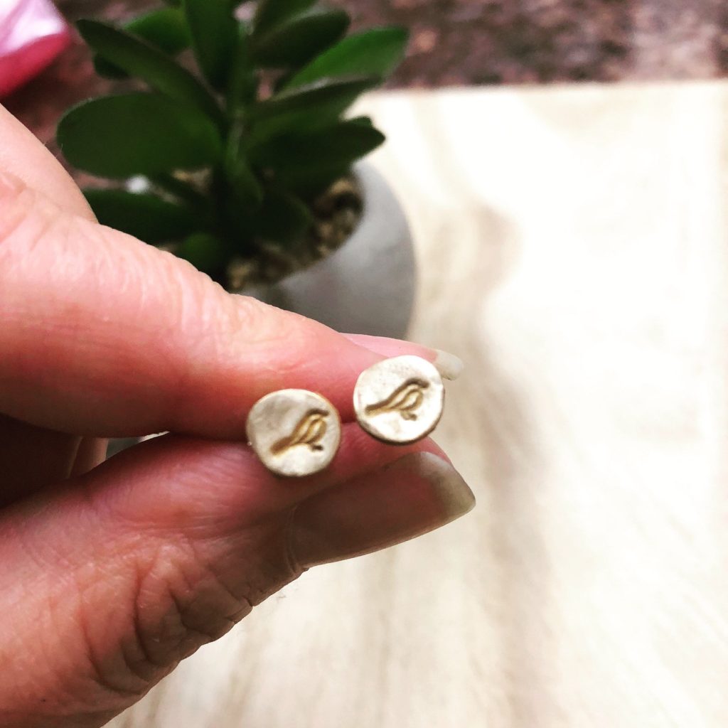 Mini Bird Earrings Adorn B244598 Olive and Myrrh 4 years ago Mini Handcrafted Bronze Earrings on surgical steel post.