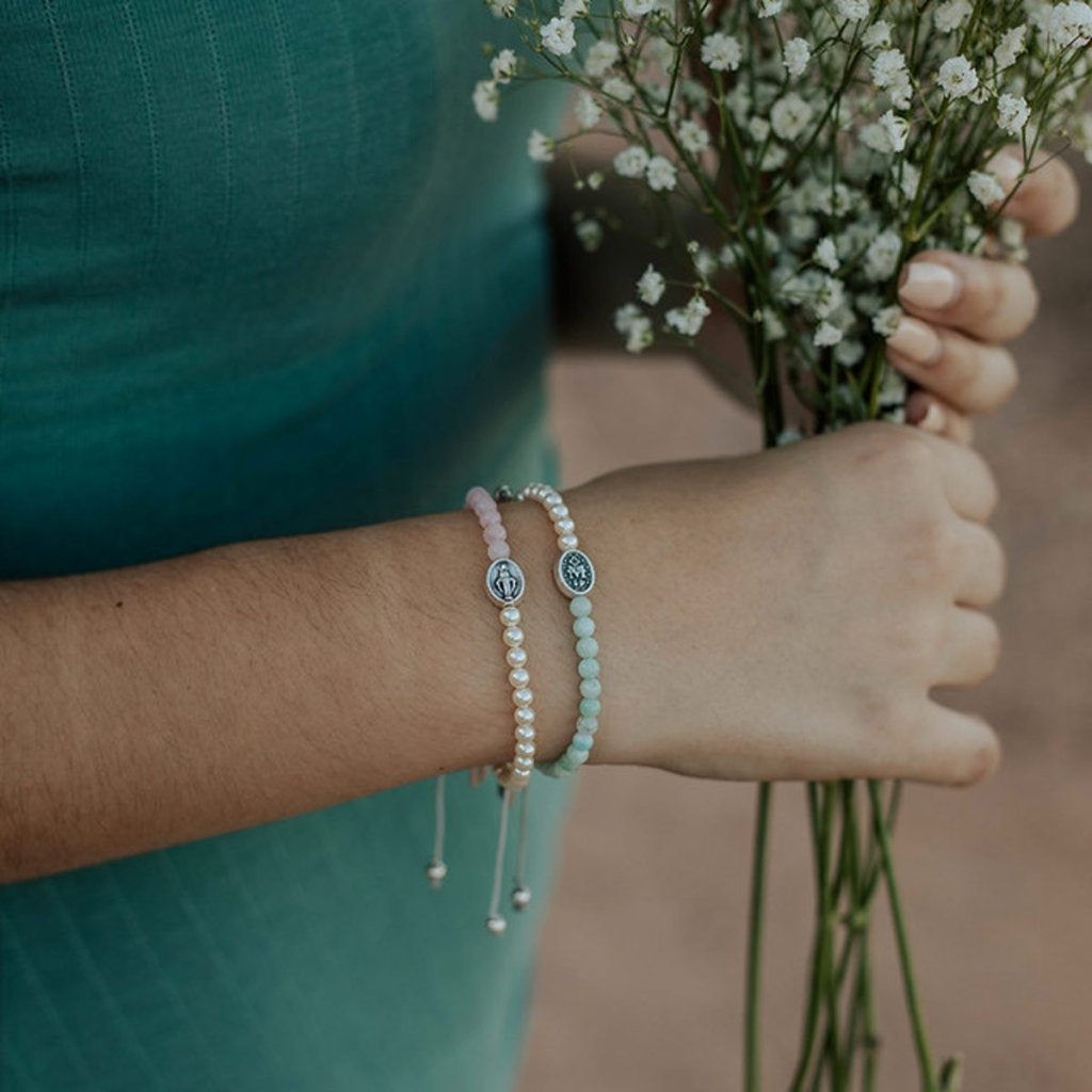 As moms, we raise our children to be kind, loving, humble, generous, and faithful. Some days, we accomplish it all and feel amazing as a mother. Other days, we feel defeated, wondering if we can make it through one more day. Life gets messy, and this is when Mother Mary steps in to hold us close, shows us the way, and reminds us that she’s got us. Wear this bracelet through all of the great days and the messy days, knowing that our heavenly Mother Mary is with you. She is loving and protecting us and our children, just like she mothered Jesus. Sometimes, all we need to do is pray… “Mother Mary, mother me.”