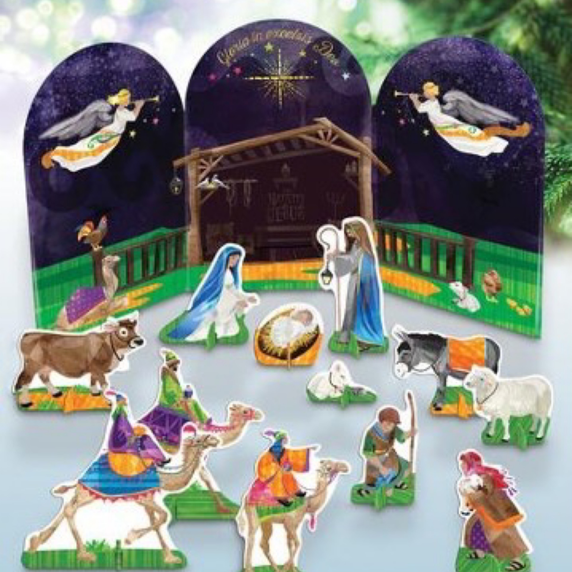 Discover the very first Christmas through play with the My Pop-Out Nativity set from Wee Believers. Designed for ages 3 years and older, unfold, assemble and recreate the scene from the first Christmas. Beautifully illustrated sturdy cardboard pieces and trifold background scene. Educational insert and vinyl storage bag are included. Package measures 8" x 12" folded.