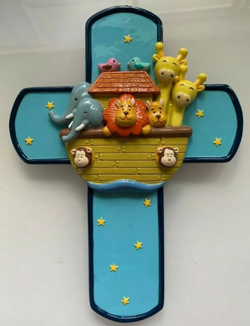 THIS BEAUTIFULLY HAND CRAFTED, HAND PAINTED NOAH'S ARK CROSS IS A LOVELY ADDITION TO YOUR CHILD'S BEDROOM.