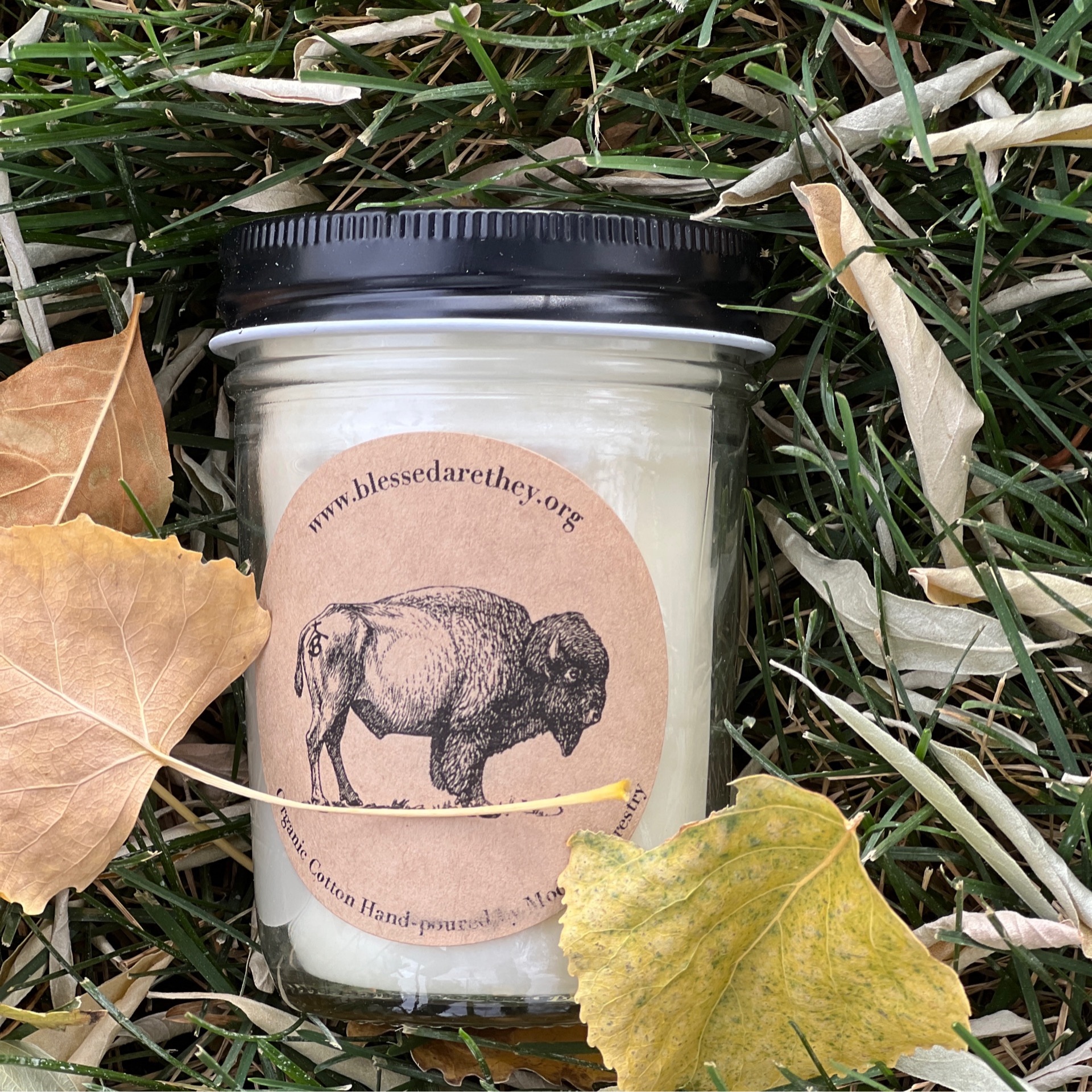 Custom Blessed Are They label are on the lid and on the side of the larger candles. Thank you for supporting two small businesses!