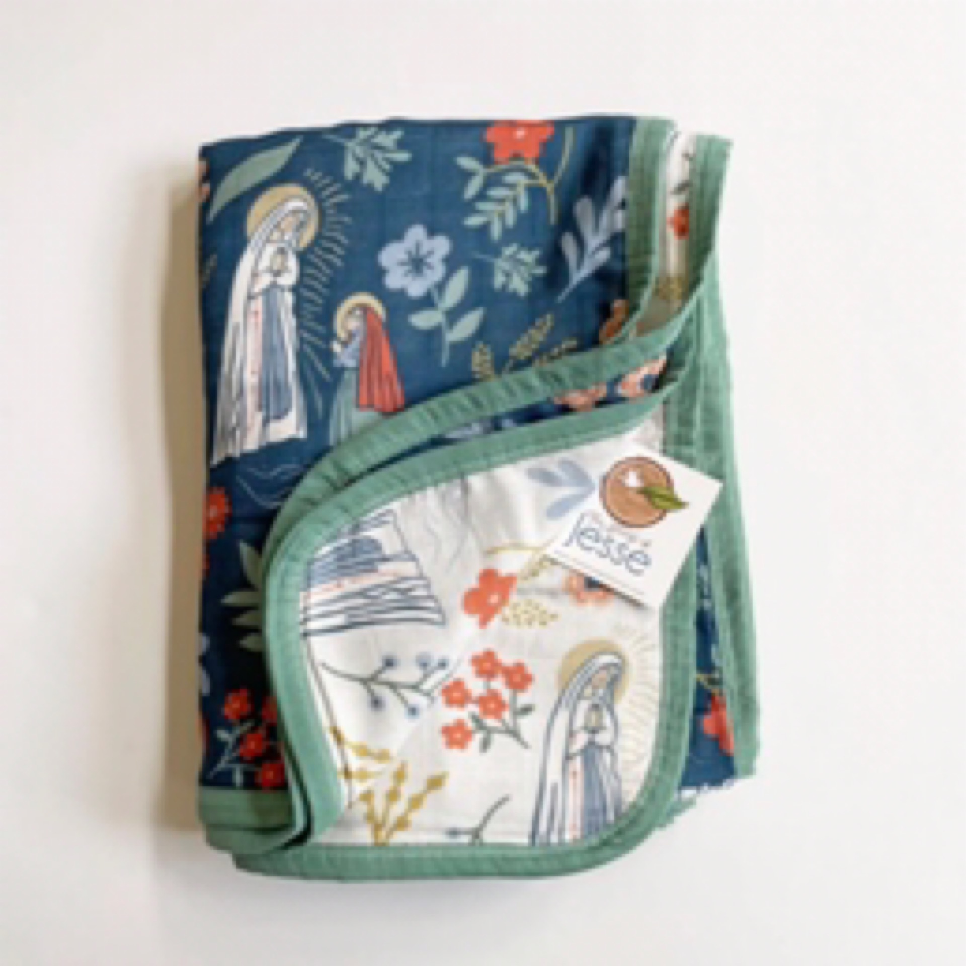 Our Lady of Lourdes and St. Bernadette Muslin Deluxe Quilt