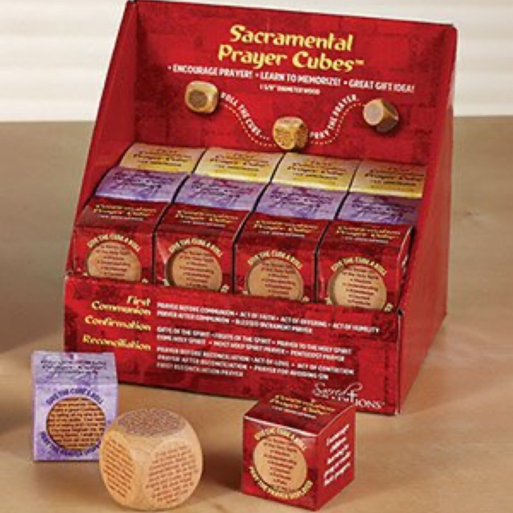Made of Eastern Maple wood and silk-screened, each cube contains six prayers. Roll the cube to determine which prayer will be prayed or recited during lessons. Choose from 3 different prayer cubes: Confirmation, Reconciliation, and First Communion — Wood — 7" W x 6.5" H x 5.25" D