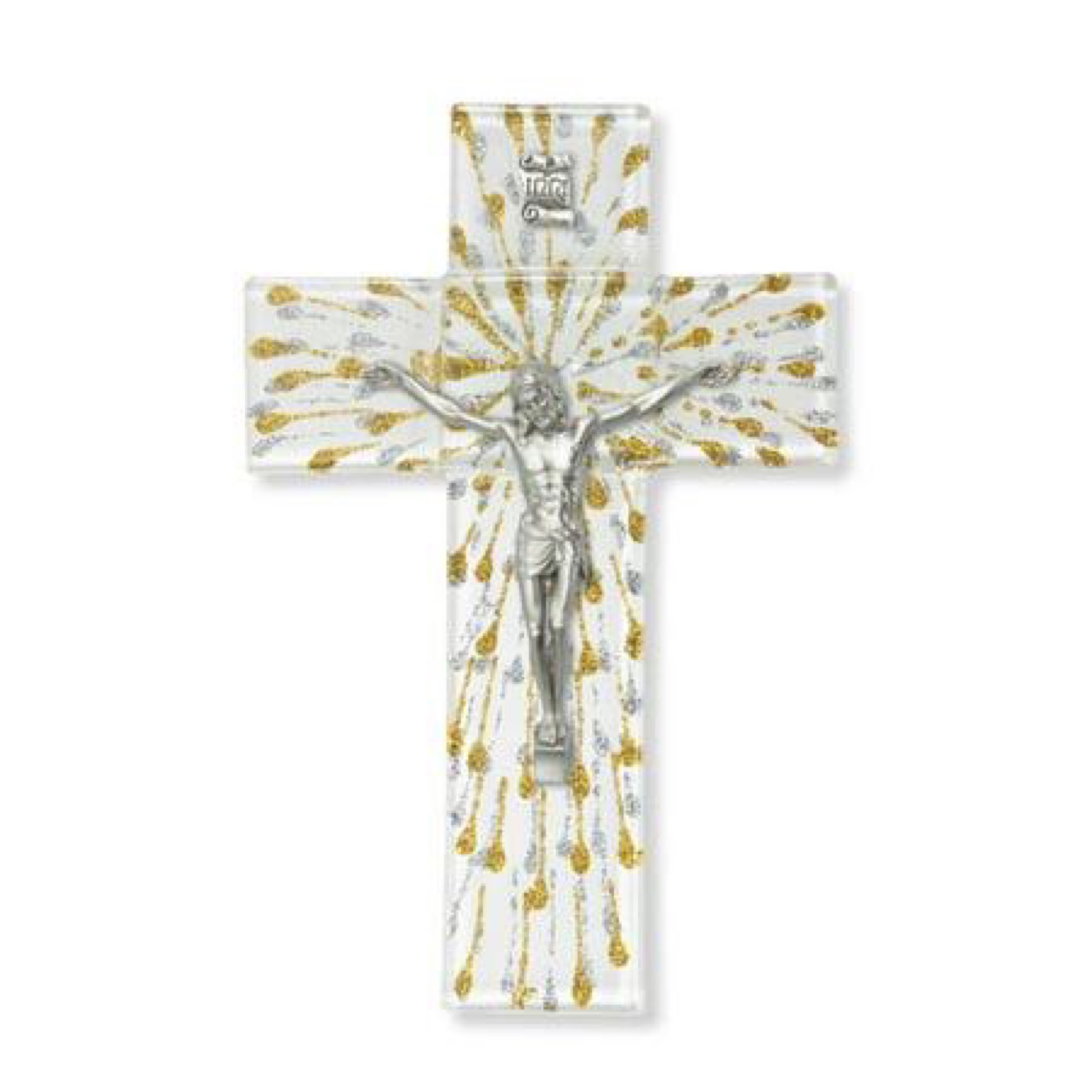 Silver and Gold Glass Crucifix Hirten 41P-7SC1