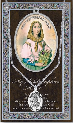St. Dymphna 1.125" Genuine Pewter Saint Medal with Stainless Steel Chain. Silver Embossed Pamphlet with Patron Saint Information and Prayer Included.