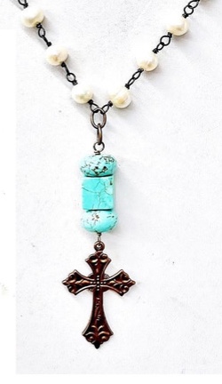 Turquoise, Pearl, cross necklace TWIGS-795