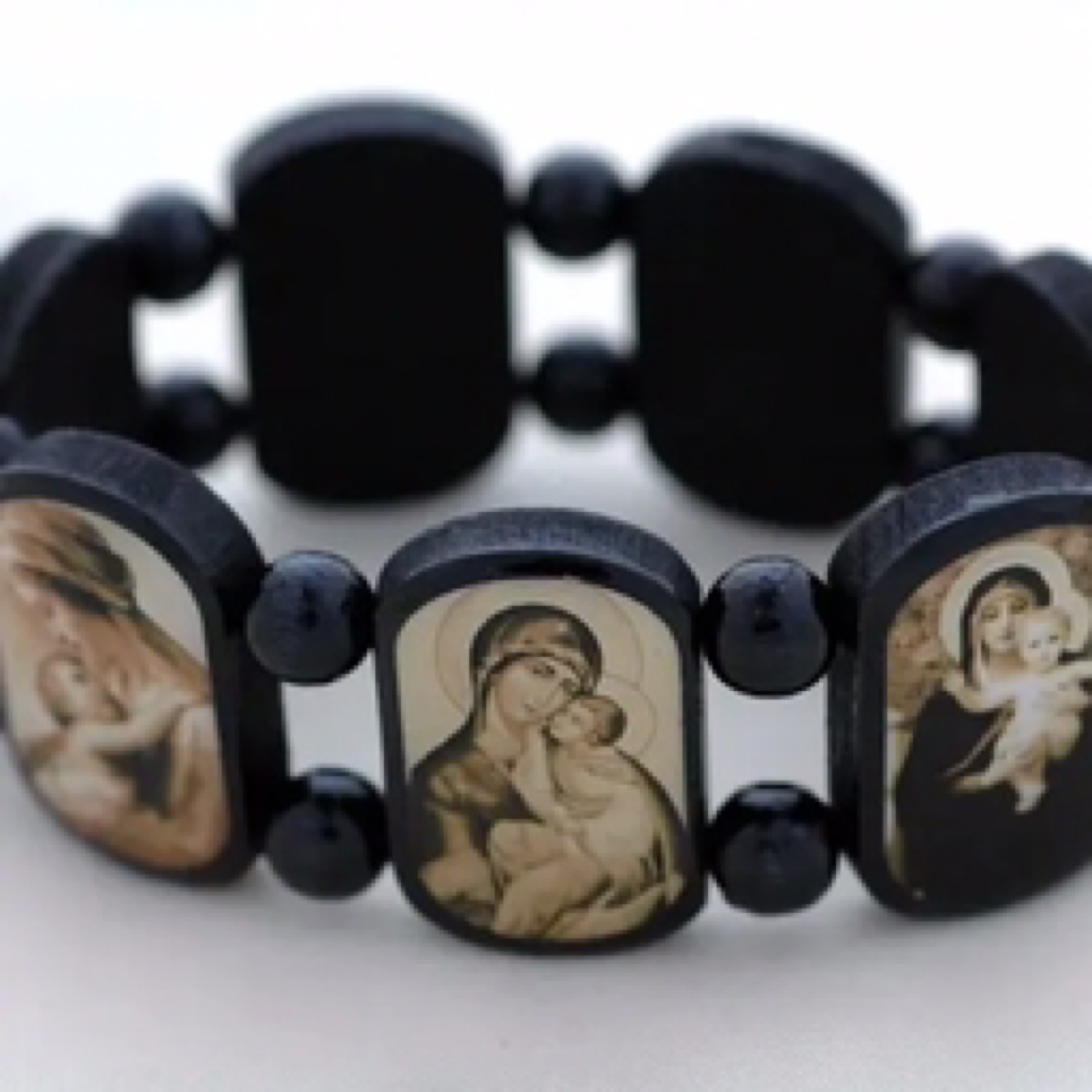 Wood Prayer Bead Bracelet with Blessed Mother Images BP7BKS