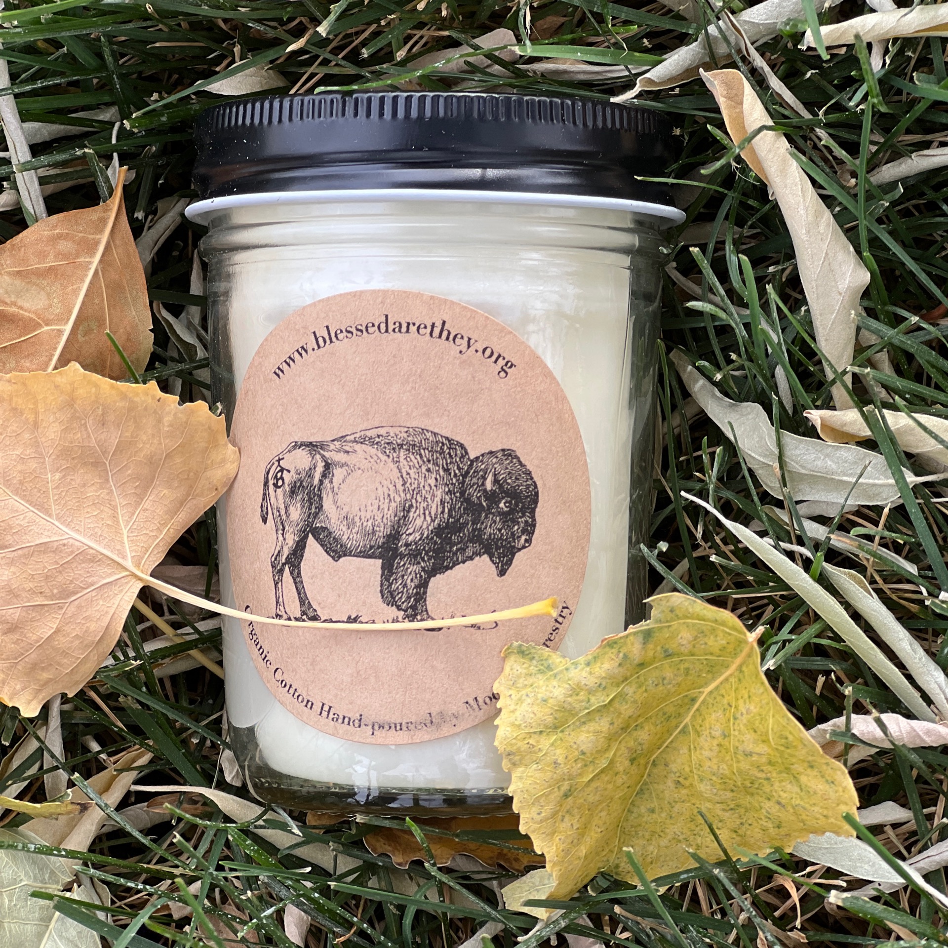 Custom Blessed Are They label are on the lid and on the side of the larger candles. Thank you for supporting two small businesses!